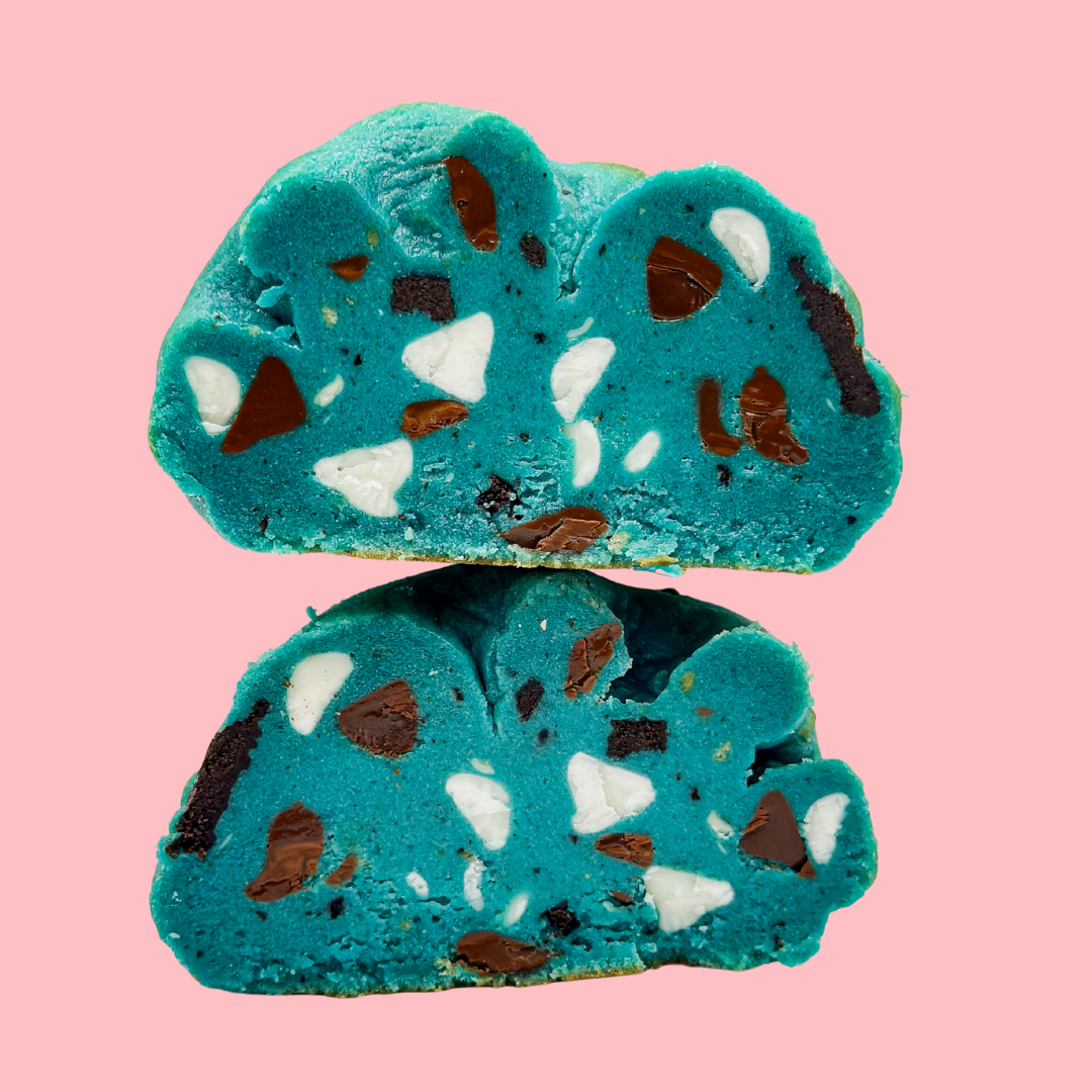 Full Size (6oz): Packed with 30g of protein, 23g of healthy fats, 37g of carbs, and 11g of fiber, this soft-baked cookie delivers big monster cookie nostalgia with every bite. With its vibrant blue protein base and crunchy chocolate cookie mix-ins, it’s a fun, crave-worthy treat that fuels as good as it tastes. At 475 calories and only 3g of sugar, it’s indulgence without the sugar crash.